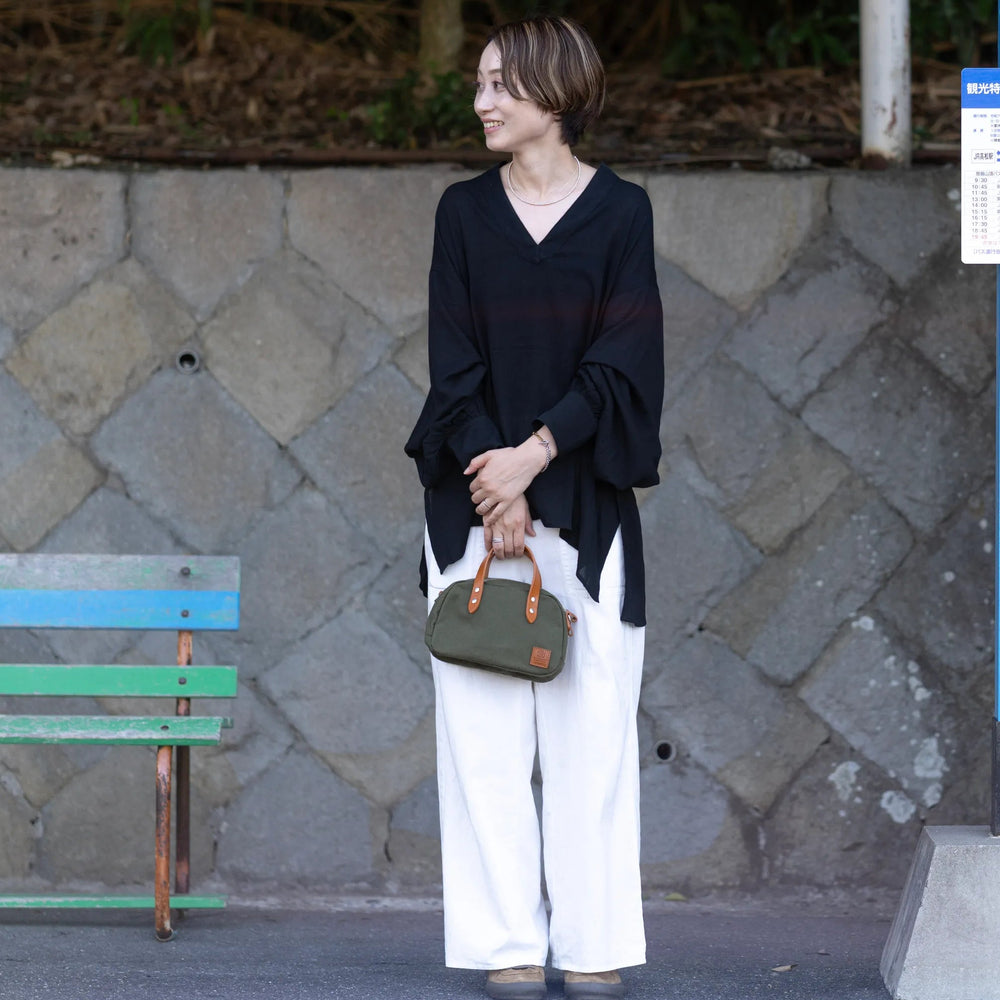 旅行用のボストンバッグをモチーフに、お豆のようにかわいいフォルムのミニボストンバッグcomame [コマメ]が生まれました。 ぷっくり膨らんだフォルムとコンパクトなサイズ感は、持つ方をキュートに引き立てます。  本革の持ち手は、どこにでも持ち運べるようちょっと短めの仕上がりです。そっと腕に通して持ったり、ちょこんと片手で持ったりできる使い勝手が良い長さです。 あなたの大切なモノをあつめてcomame [コマメ]と一緒にお出かけしませんか。 すっきり開いて、しっかり守る 底まである長いファスナーが付いたボストンバッグスタイルのcomame [コマメ]。大きく開く入り口は、中身を見渡しやすくサッと欲しいアイテムにアクセスできます。 左右どちらからも開けやすい両開きファスナーの引き手には、レザーを付け、高級感と持ちやすさをプラスしています。レザーの引き手は、触れた時の柔らかくなめらかな触りごこちが格別です。 しっかり開いても脇から荷物がこぼれ落ちないよう、内側にガードをつけました。 安定感のある8cmマチ 見た目はコンパクトでもマチはたっぷり8cmあり、財布・ポーチ・エコバッグ・キーケース・スマートフォンを入れてもまだ余裕があります。 カワニシカバンのコンパクトな長財布ricchyL[リッチーL](高さ:10cm 幅:17.5cm マチ幅:1.5cm )もしっかりと収納できるよう設計しました。 ファスナー付きのバッグは、お財布などの貴重品を入れても安心です。カバンの左右についたショルダー金具(Dカン+レザーパーツ)にオプションの「ショルダーパーツ」を取りつけていただくと、ショルダーバッグとしてもお使いいただけます。 なめらかで上品 きめ細やかな織り目が特徴「大人帆布」 一般的な帆布よりもきめ細かい帆布のことをカワニシカバンでは "大人帆布" と呼んでいます。 見た目は一般的な帆布と比べるときめ細かく華奢なイメージですが、より丈夫でパラフィン加工も施されているため撥水性もあります。 ※雨天でのご使用や、汗・水分を含んだ場合、または衣類等との摩擦により、多少の色落ち・色移りする事もありますのでご注意下さい。 ※製品にアルコールが付着しますと色落ち色移りの原因になります。アルコールがかかることはお避けください。 【大人帆布生地の染色について】 ・一部の商品(特に赤色の生地)につきましては、色堅牢度の基準はクリアしておりますが、気温や時期によっては色移りが発生しやすい場合がございます。色落ちや色移りは、染物生地の特性です。あらかじめご理解いただけますようお願い申し上げます。 ・雨天でのご使用や、汗・水分を含んだ場合、または衣類等との摩擦により、多少の色落ち・色移りする事もありますのでご注意下さい。 ・製品にアルコールが付着しますと色落ちや、色移りの原因になります。アルコールはお避けください。 詳しくはFAQ「帆布シリーズの商品は色移りしますか?色移りを防止する方法はありますか?」をごらんください。 ↓大人帆布について詳しくはこちら よく使うモノの定位置 インナーポケット バッグの側面に添うようにつけられたインナーポケットは、鍵やICカードなどすぐに取り出すアイテムを入れられます。 abb[アベベ]やmico[ミコ]との相性も抜群 comame [コマメ]は、abb[アベベ]やmico[ミコ]シリーズをお使いの方へおすすめのコンパクトなバッグ。 普段使いのお財布や鍵など貴重品だけをスマートに収納できる大容量バッグの小さな相棒として活躍します。 カワニシカバンの特徴である薄手の大人帆布とステッチレスデザインを採用し、シリーズで揃えてお楽しみいただけます。 高品質レザー「栃木レザー」を採用持ち手、ネームタグ等に採用したのは栃木レザー。 現状に満足しないカワニシカバンの新たな挑戦として、付属の革に「栃木レザー」を採用しました。 丈夫で厚みのある栃木レザーは、使い続けることでシルエット、色味、つやが美しく変化する「経年変化」をお楽しみいただけます。...