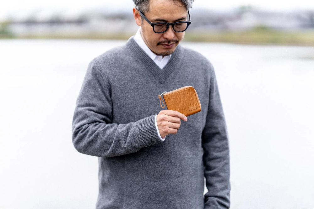 Youtubeで紹介しました。 カワニシカバンの定番カラー“サンドレザー”の長財布 ファスナーでL字型にひらくコンパクトな長財布 https://www.youtube.com/watch?v=S7mJ3Q7LCWg&t=408s L型財布ricchyL[リッチーL]は、1万円札がギリギリ入る大きさで作られたコンパクトな長財布です。「長財布なのにスリムでコンパクト」を叶えるためにいくつもの工夫を凝らしたカワニシカバンの自信作です。 「長財布なのにコンパクト」を叶えるために、小銭入れのファスナーをなくしました。ファスナーを付けなくても小銭が飛び出さないよう試作を重ね、構造を工夫しています。 「長財布なのにスリム」なフォルムをキープできる秘密は、可動式のカード入れ。大きく動くカード入れが厚さを調節してしてくれます。 オリジナル素材“サンドレザー”4色 【新商品】カバン職人おすすめの新作レザーが完成したので、魅力を全力でお伝えします! 皮を革へと加工するタンナー「セトウチレザー」さんと共同開発した「サンドレザー」は、革表面を毛羽立たせるよう加工することで天然の木目のような模様がついています。 触ると少しざらつきがある模様のおかげで、キズが目立ちにくく味わい深い雰囲気があります。 ↓サンドレザーについてくわしくはこちらから https://shop-kawanishikaban.myshopify.com/pages/leather 大容量なのにコンパクトの秘密は「可動式ポケット」 ricchyL[リッチーL]は小銭入れとカード入れの付け方を工夫することで、今までの長財布よりスリムでスマートに出来上がりました。 ポケットが動いて厚みを均等に ポケットを可動式にすることで中身に合わせてポケットが移動し、財布の厚みを均等にしてくれます。沢山入れてもスリムなシルエットです。 ファスナーをなくした小銭れ 薄いシルエットを保つために小銭入れにはファスナーをつけていません。ファスナーをつけなくても小銭が飛び出さないよう、小銭入れは本体より少しだけ低く製作しています。 本体のファスナーを閉じることで小銭入れの口もしっかりと閉まり、本体のファスナーを開けると同時に小銭入れの口も開くので、お金へのアクセスがワンステップで叶えられます。 可動式だからお財布のメンテナンスも簡単 可動式のポケットはメンテナンスにも便利。ポケットを取り出すことで、奥までしっかりと拭くことができます。 小銭入れと9個のポケット ①小銭入れ 中央にある小銭入れは、財布の中身を仕切る役目もあります。 お札とレシートを分けたりすることで財布の中身をスッキリと整理できます。 ②可動式カードポケット カードを縦に入れるポケットが4つあります。安心の収納量です。 ③固定式カードポケット カードを縦に入れるポケットが4つあります。 ④ロングポケット(マチのない方) マチのない方には、お札を入れます。コンパクトさを追求し、一万円札ぴったりに製作しております。 ⑤ロングポケット(マチのある方) マチのある方にレシートや領収書、カードポケットに入りきらないカードを収納できます。※一万札ギリギリの大きさで製作しているためマチ側にお札を入れると、ファスナーに引っかかる場合がございます。 ⑥マチ 「マチ」の内寸法は約3.5cm。スリムなお財布の容量を増やす工夫です。 レザーの色に合わせて選ばれた糸 カワニシカバンのレザーアイテムは、革本来の質感を残したものから華やかに染め上げられたカラーまで、数種類のお色で製作しております。 本革は染め上がりにも個性があるため、革と色の合う糸を選び、毎回糸を変える事は効率の面から見ると良いことではないでしょう。...