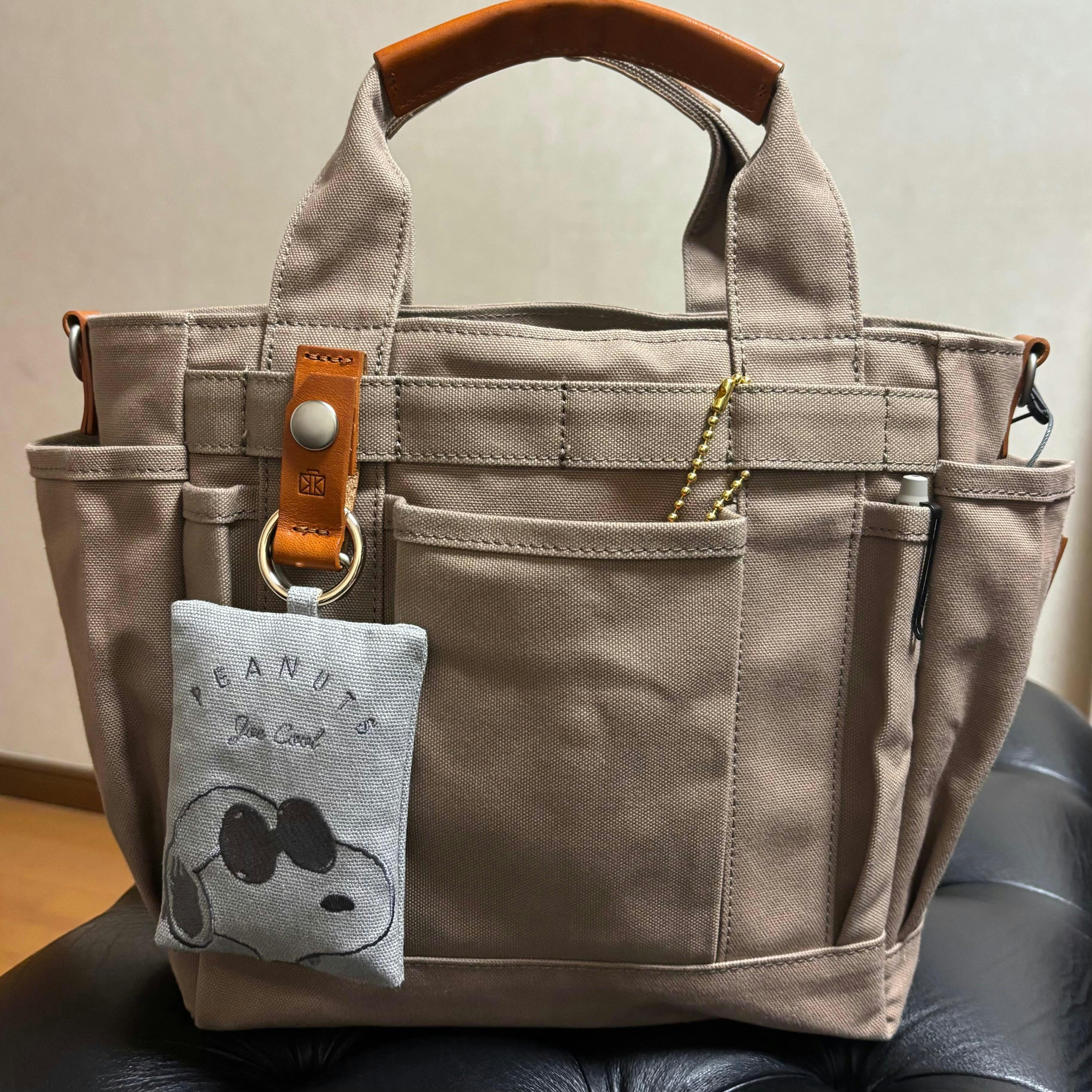 小さなレザーがアクセントになって、帆布バッグに高級感をプラスしています。