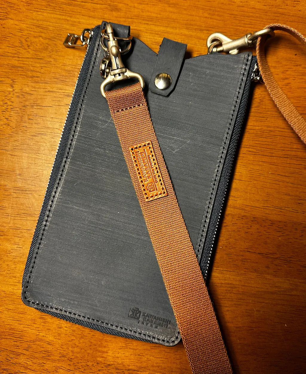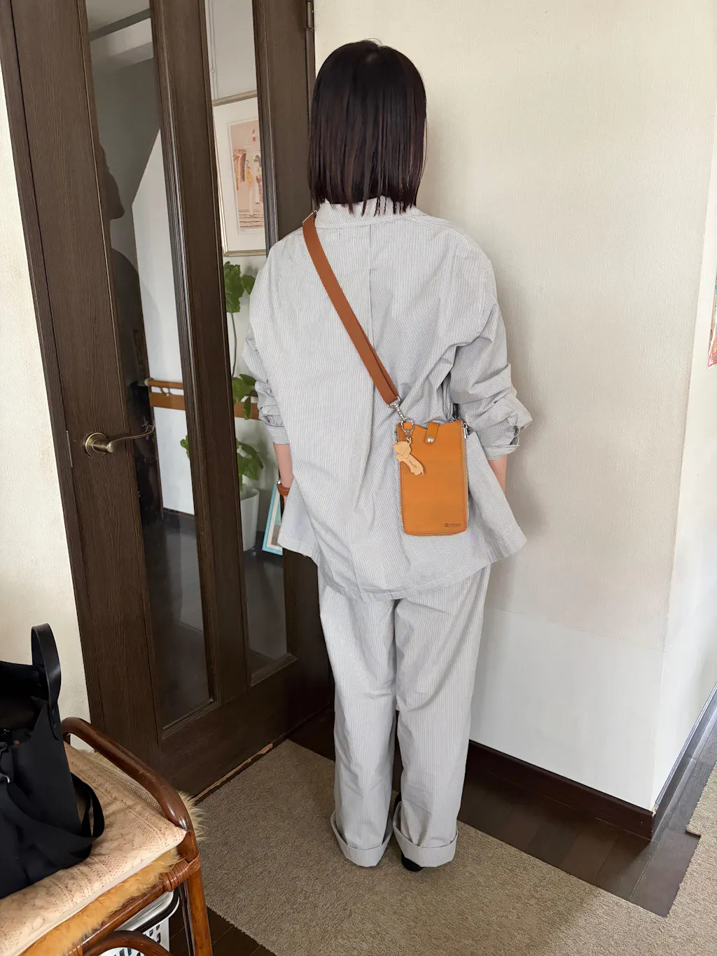 店舗のお客様から、「近場へのお出かけや公園に行くときに、小さい財布とスマホが入る革のケースがほしい」という声をいただき生まれたアイテムです。