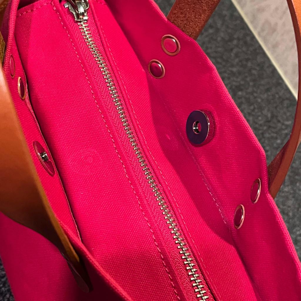 The fabric is firm and dignified, so the bag stands upright even without a lining. Not having a lining also makes the bag lighter.