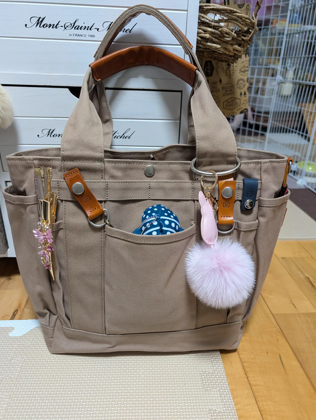 小さめのトートバッグを求めていた家内が選んだのがmico-Sでした。仕切りポケットに城巡りに持ち歩く本がジャストフィットしたらしいです。今までは城でスタンプを押すたびに鞄の中から本をガサゴソ探していましたがこれで迷わず取り出せると喜んでいます。仕切りやポケットのおかげで迷わず中のものを取れるらしく便利らしいです。