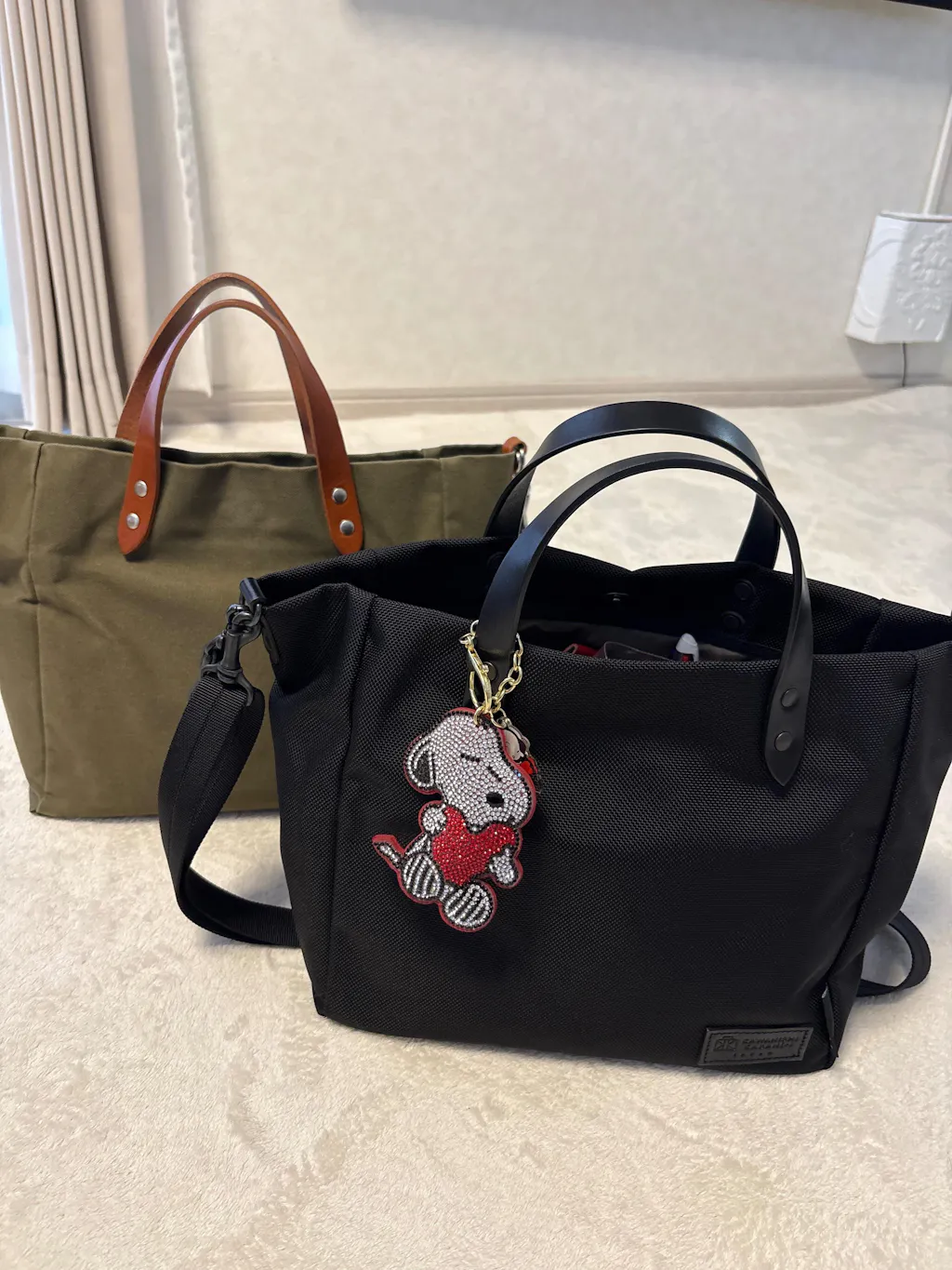 栃木レザーの持ち手とネームタグ